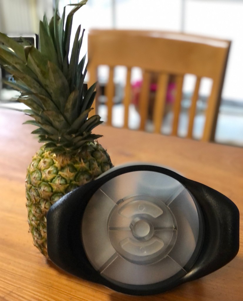 I absolutely adore pineapple. Until just recently, I ate pineapple out of a can. It seemed complicated to cut a fresh pineapple with a knife. My friend Shelly had a Pampered Chef party a few months ago, and I decided to buy a pineapple slicer. I already have a slicer that cuts apples and pears perfectly, so I thought this gadget might work just as well. And, thankfully it does…for my hubby.