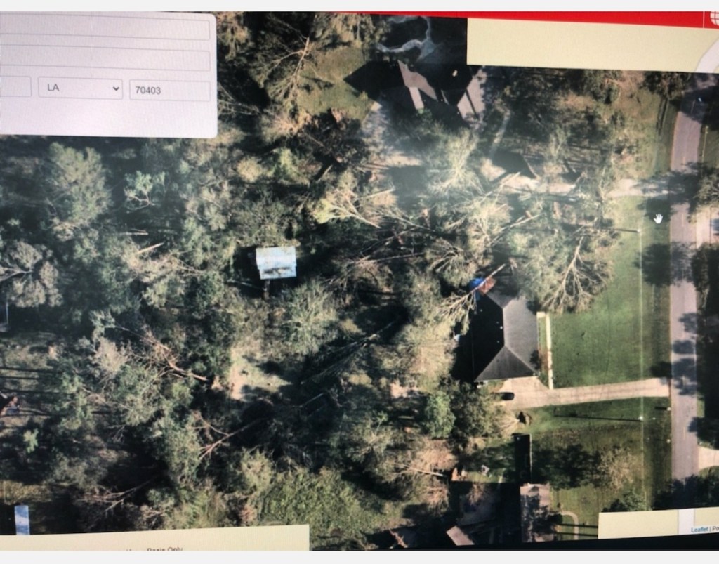 Thankfully, Barry, Jr. emptied the buckets throughout the remainder of the storm (hours) which included repeated trips up to the attic to empty the bucket under the bigger of the two holes in the attic. He was exhausted; we were all exhausted. However, we had survived a frightening experience. I am not sure how I was able to finally fall asleep because the ferociousness of the gusting wind, the creaking and cracking of the trees, and the fearful thoughts of another tree falling on the house assaulted my mind. I later found out from my sister, who lives in Atlanta, that we were hit by sustained winds of 80 mph with gusts up to 100 mph. Ida beat the crap out of us for hours.
