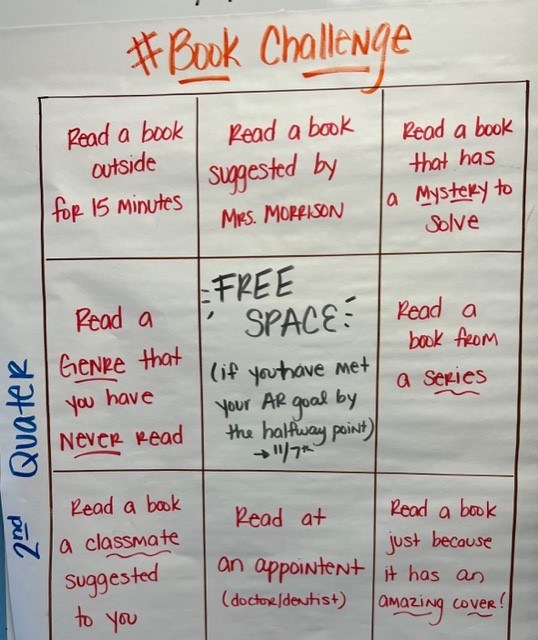 My friend Melissa, who I worked with at HGCS, teaches 7th Grade Language Arts and created a challenge for her students as a way to make reading for Accelerated Reader more fun. So, I decided to participate in this challenge as well. This challenge runs from mid October until December 12th. I had already reached my AR goal, so I fulfilled the Free Space. Otherwise, I did not complete any prompts in October. I did a combination of books and short stories for the prompts I read in November.