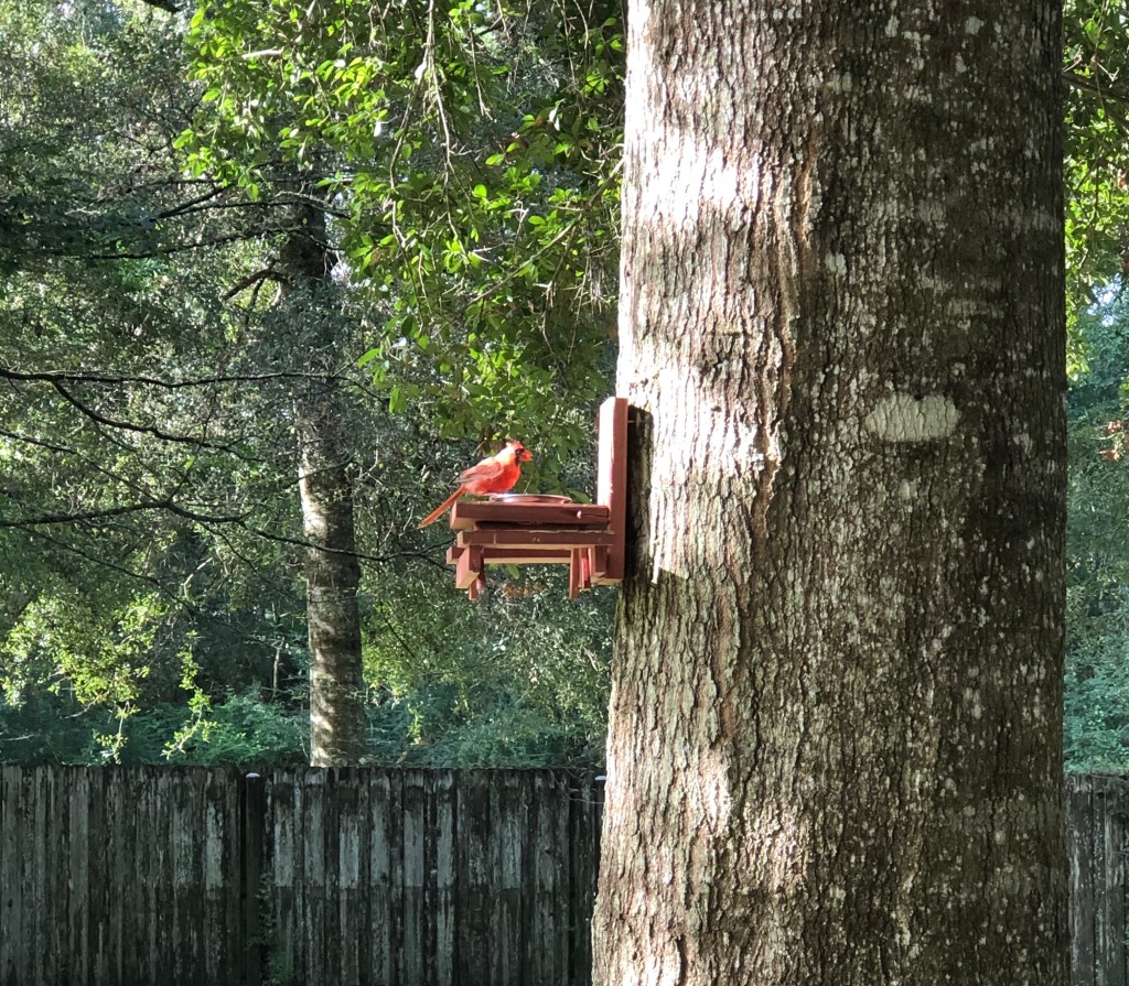 Now, that all sounds terrific and doable as long as my family and I are not severely impacted by Hurricane Ida which is coming directly towards Louisiana. Hurricane Ida is predicted to make landfall tonight (the 16th anniversary of Hurricane Katrina). It is also a Category 4 storm. What does that mean for my neck of the woods? Lots of rain, storm surges which contribute to flooding, winds up to 85 mph, risk of tornadoes, and loss of electricity. I am staying put in my home with my hubby, our two sons, and our four fur babies. We have food and water, as well as gasoline for the generator. We have natural gas, so we can still cook meals. Items outside have been picked up and put away, and the gutters have been cleared of leaves and debris. Our bathtubs are full of water in case we need it to flush toilets. We are ready. All we can do now is patiently wait for the impact of Hurricane Ida and pray that everyone in her path remains safe. I hope my cardinal brings us good luck.